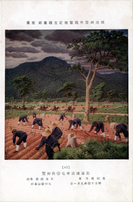 - No. 42: The Emperor inspecting the farmer-soldiers tondenhei) during the imperial tour of Hokkaido (September 1, 1881).