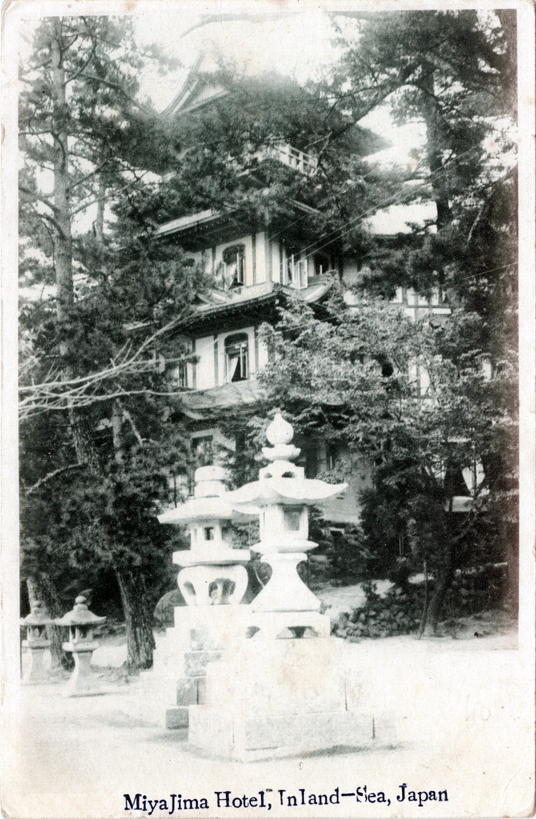 “My favorite of all places visited in Japan is Miyajima on the Inland Sea. While the hotel is not the last word in modernity, I think it is not unpleasing and I have my misgivings when I am told that they are going to demolish it and replace it with a modern hotel on European lines.