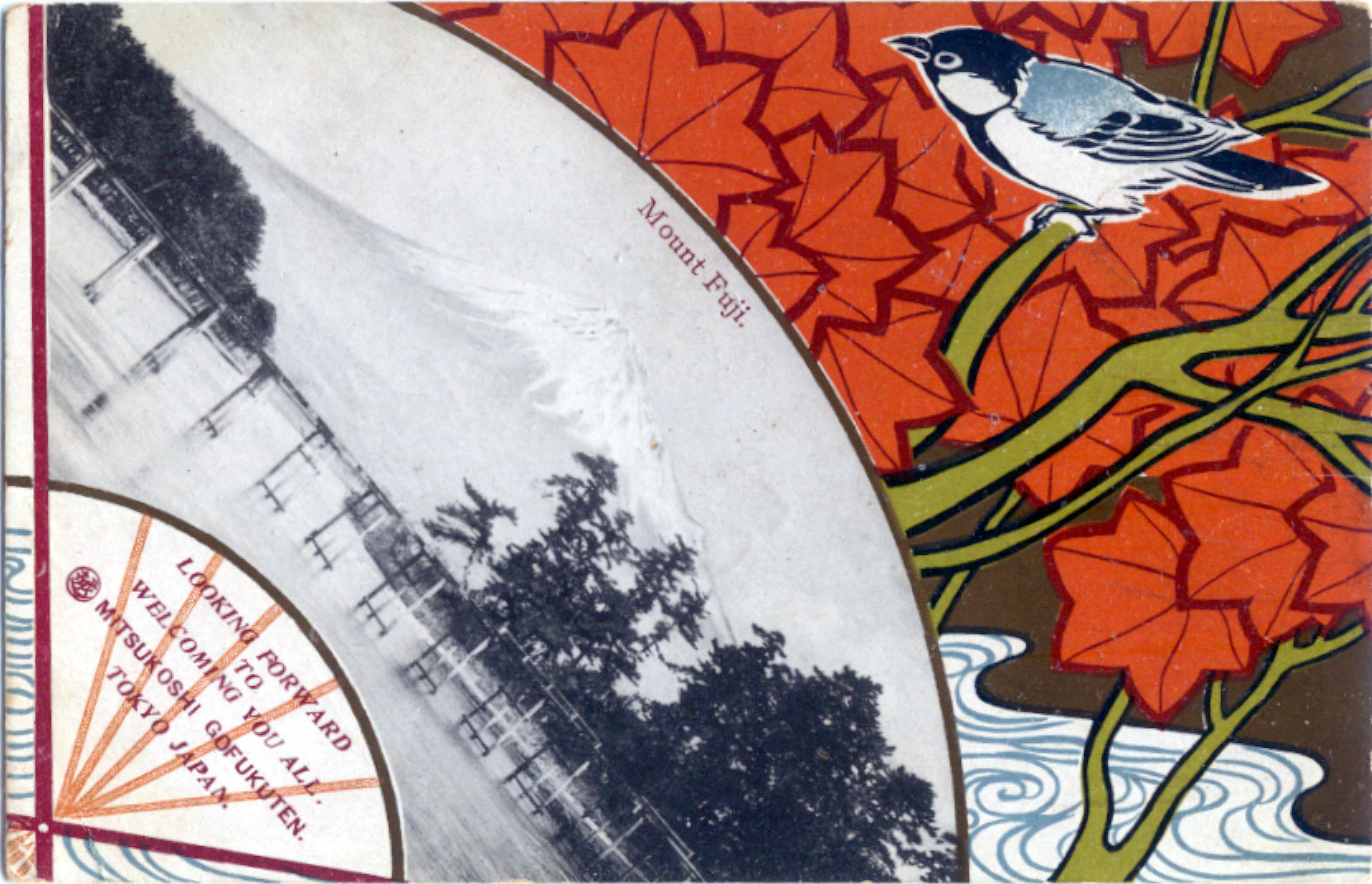 Mitsukoshi department store, advertising postcard, c. 1908, welcoming the ‘Great White Fleet’ to Japan.