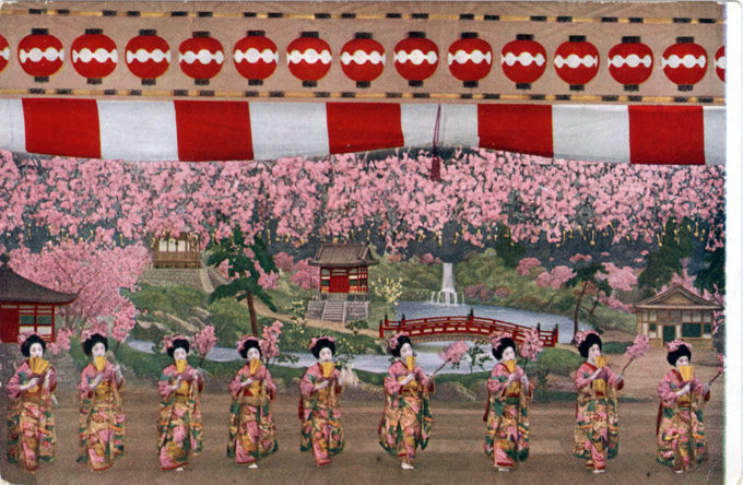 “It is important to appreciate what an enterprising initiative Miyako Odori was in the context of the times … Miyako Odori was completely different from the usual Japanese stage dance performances of the time. The established pattern was such that one or two dancers appeared onstage and performed for a few minutes; after an interval, other dancers would appear to hold another performance. However, in the first Miyako Odori, 32 dancers in identical kimonos appeared on the stage and danced in the same manner. In this respect, it was similar to the Paris ‘Can Can’ dance, and was very new and original compared to Japanese stage performances at the time.