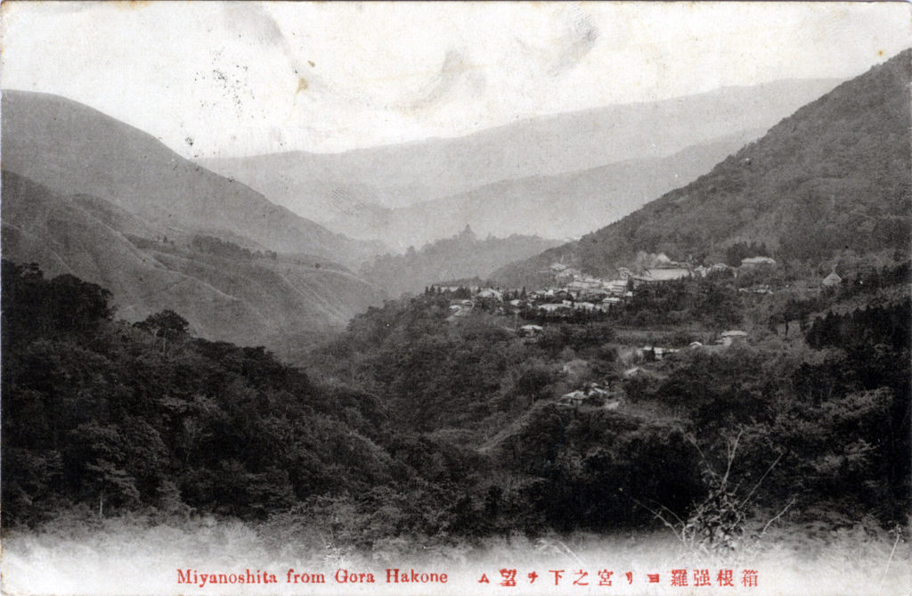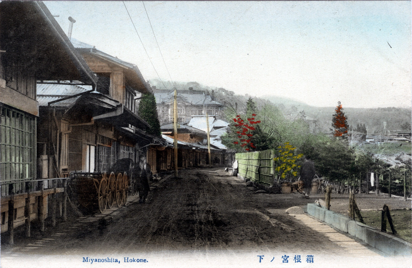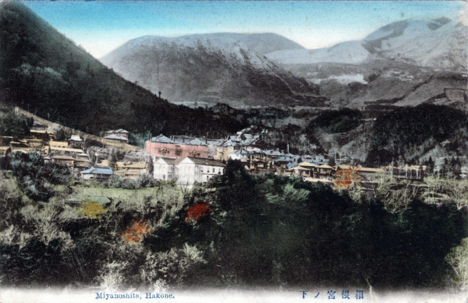 Miyanoshita Village, Hakone, c. 1910. In distance (at center) can be seen the famed Miyanoshita Fuijya Hotel.