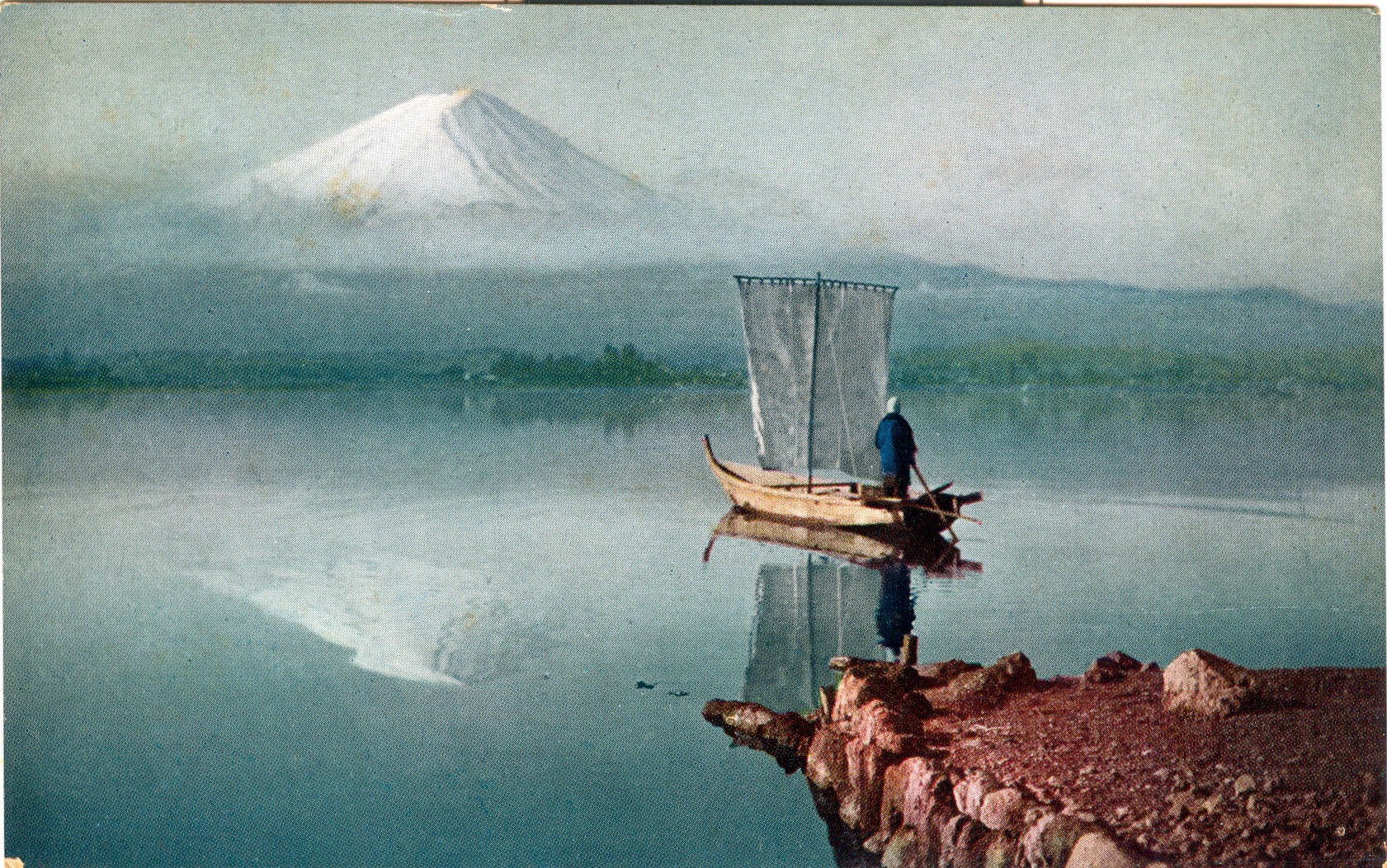 Reflected view of Mt. Fuji, c. 1920, upon the waters of Ashi-no-ko [“Lake of the reeds”] – known also as Lake Hakone.