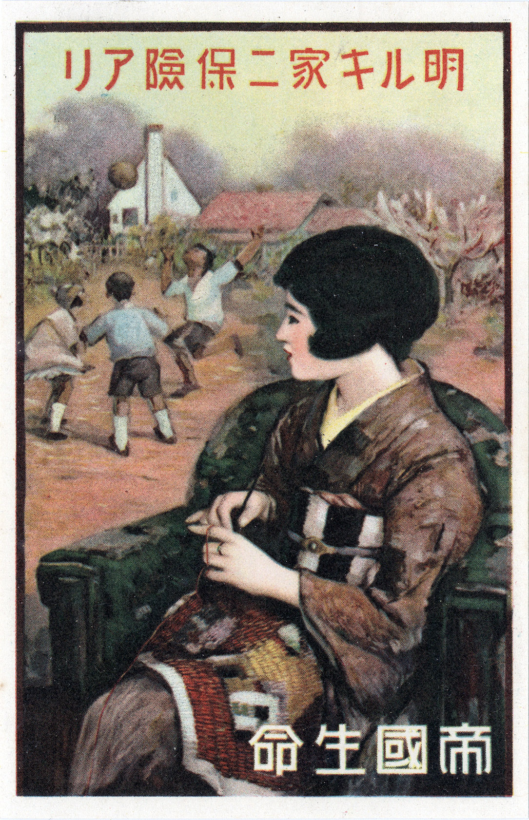 “My family has two coats of armor”, Imperial Life Insurance Co. advertising postcard, c. 1930. The Imperial Life Insurance Company (Teikoku Seimei Hoken Kaisha), founded in 1888 in Tokyo, was one of Japan’s two earliest life insurance companies (Meiji Life, the earliest, was founded in 1881) and typified the early, extraordinary “wild west” nature of Japan’s rapid 19th century modernization. One of the company’s co-founders was a former Chief pharmacist of the (Imperial Japanese) Naval Hospital, Fukuhara Arinobu. Disbanded, reorganized and renamed in the aftermath the Pacific War, Imperial Life lives on today as the Asahi Mutual Life Insurance Company.