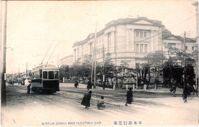 - In the distance is the Tokyo Stock Exchange at Kabujocho in the Nihonbashi district, c. 1910.