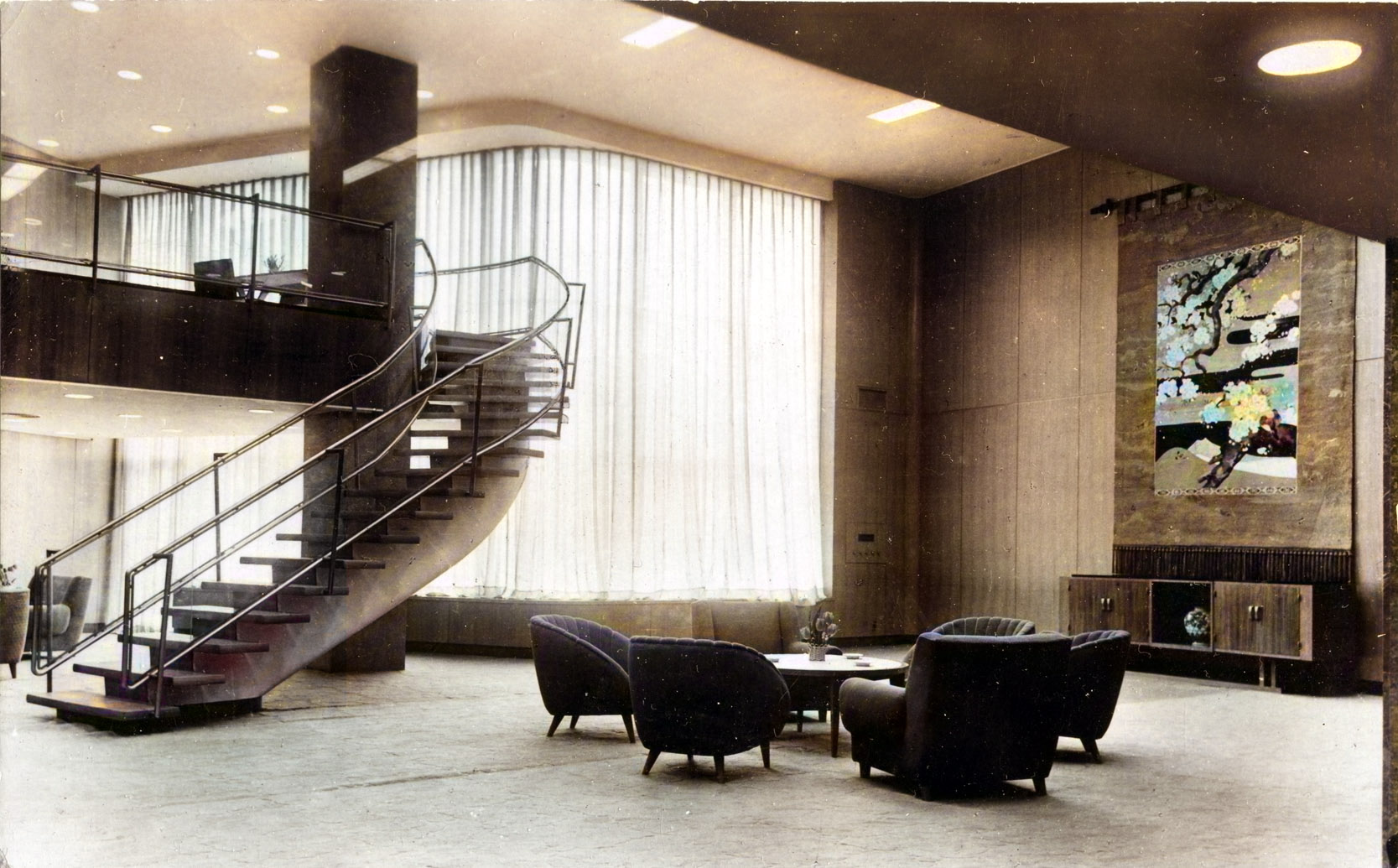 - Nikkatsu Hotel, lobby, c. 1960. (Colorized)