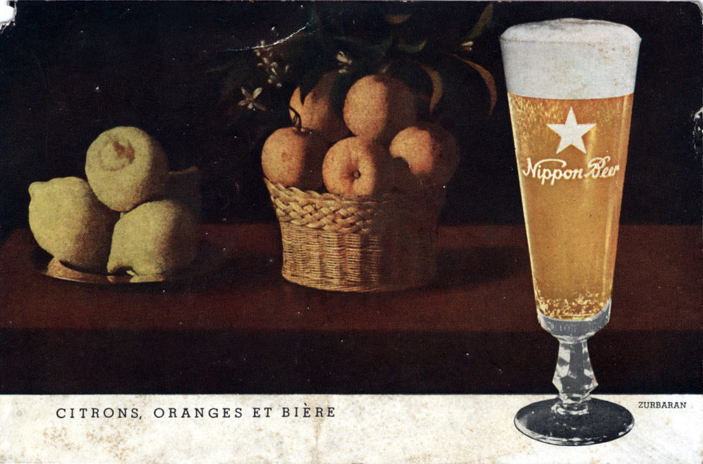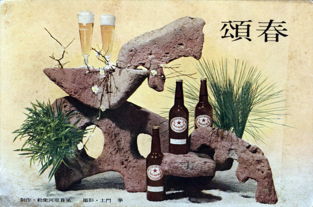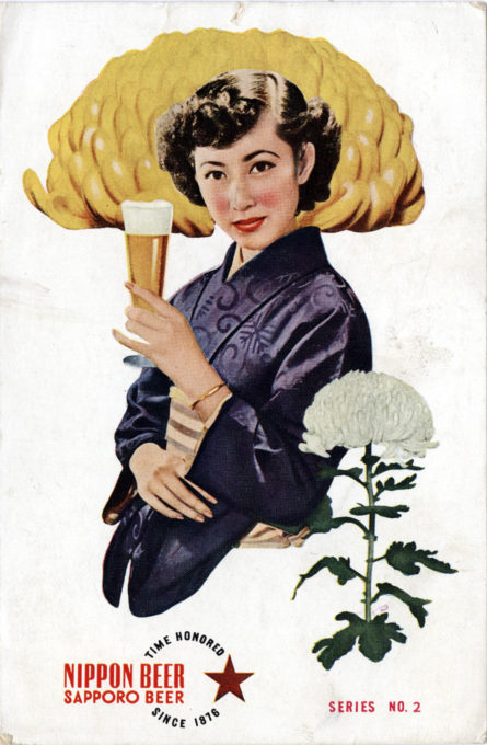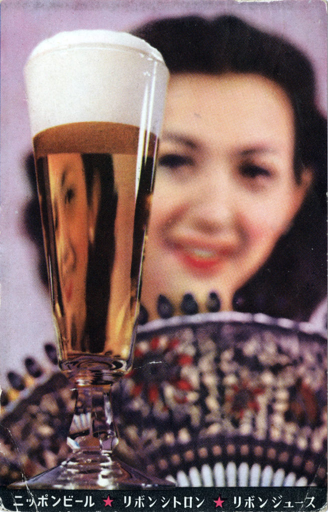 Advertising postcard, c. 1950, for Nippon Beer, and two soft drinks first bottled by the brewer in 1909 – Ribbon Citron & Ribbon Juice.