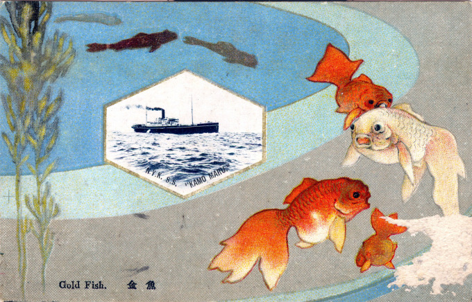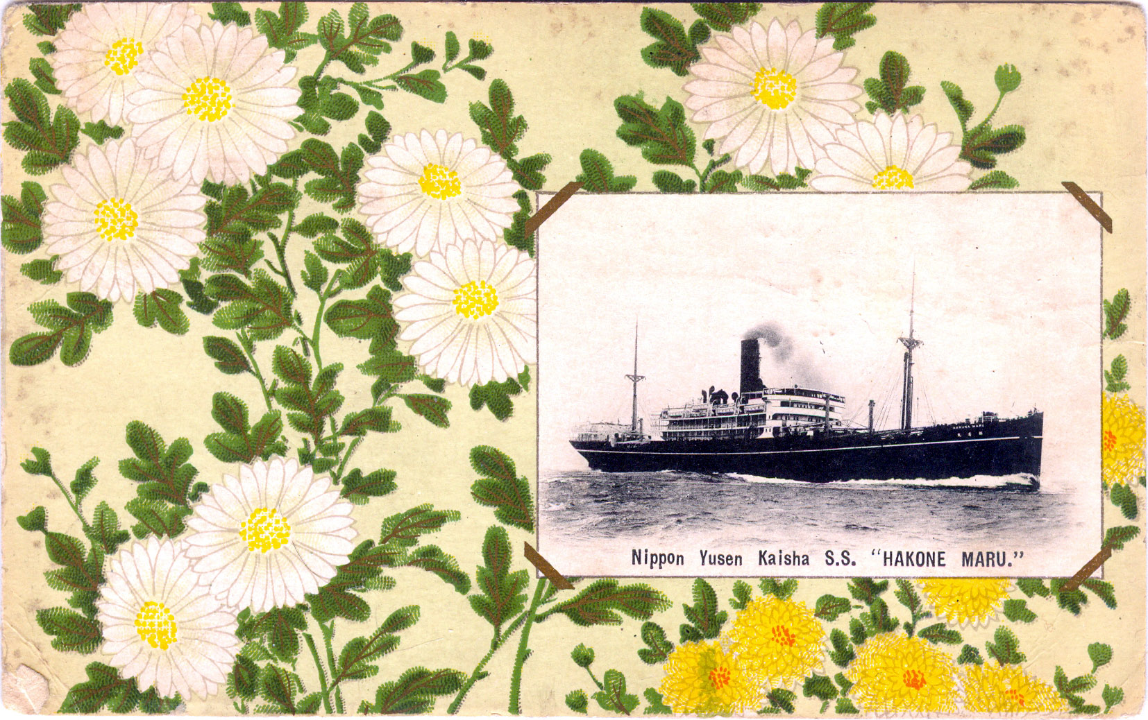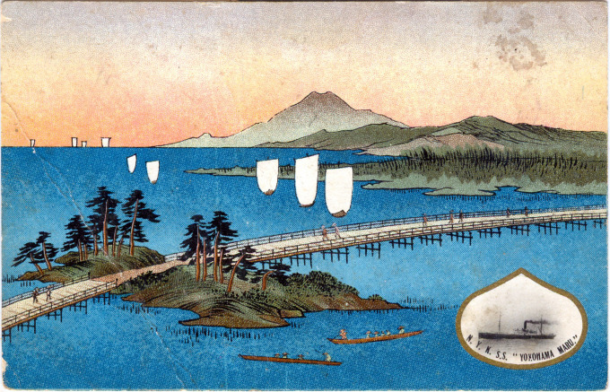 NYK Line, Yokohama, c. 1920. Departure of the Hakozaki Maru. (Note: Photo was reversed before printing on postcard.)