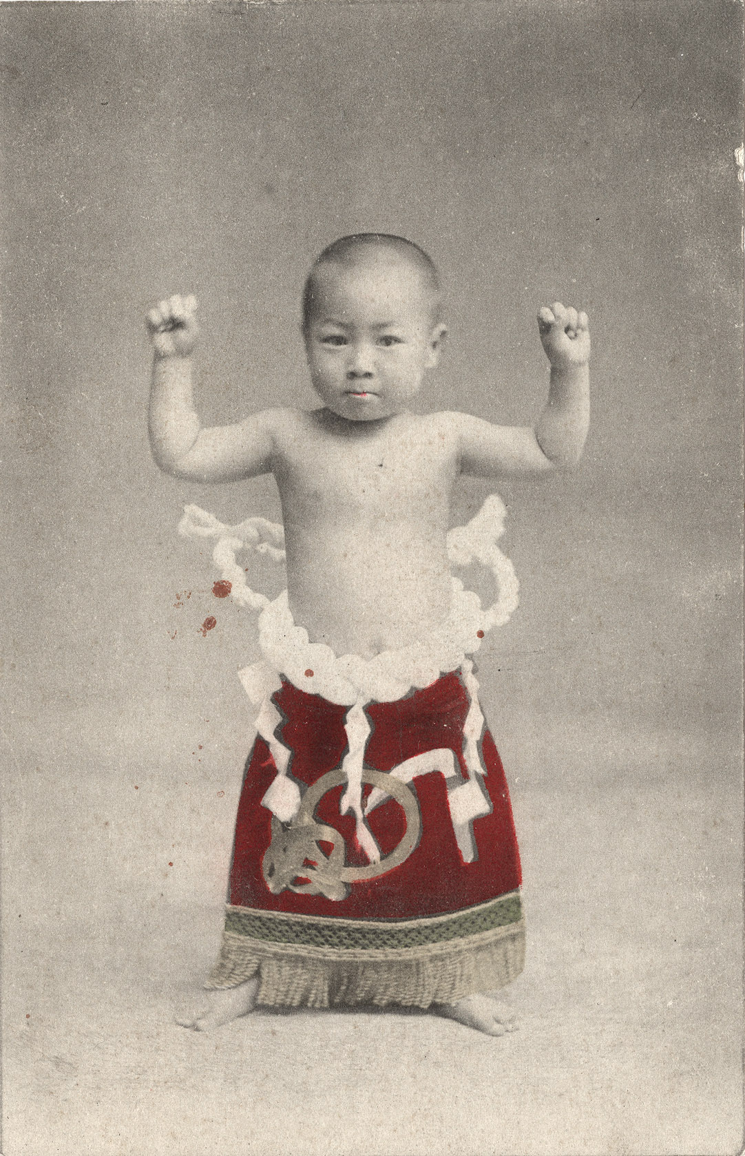 Otokonoko [“young boy”] sumo “wrestler”, c. 1910. A cute picture but, even in earlier times, professional sumotori or rikishi apprenticeships began between after 15 years of age. Nowadays, a junior high school education is also compulsory along with minimum height and weight requirements also stipulated.