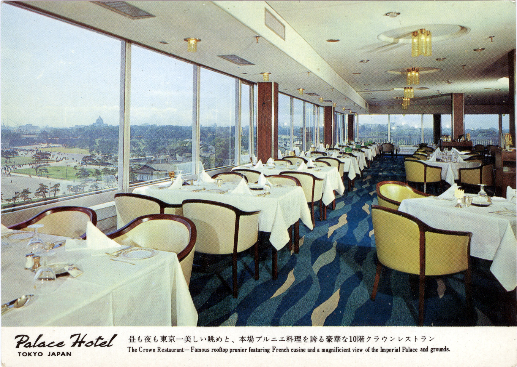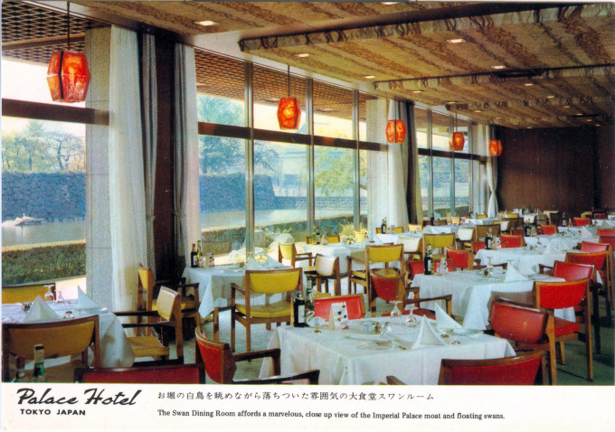 Personal note: After our family move to Tokyo in the summer of 1970, the Palace Hotel was our “home” for six weeks. The hotel was within walking distance to Tokyo Central Station and the Marunouchi business district (where my father worked), and close, too, to Hibiya Park, Nihonbashi, Ginza and Shimbashi. Those neighborhoods were my first introductions to Tokyo and Japan.
