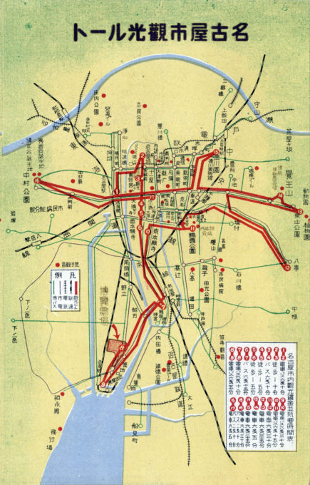 - Street car map, Pan-Pacific Peace Exhibition, Nagoya, 1937. The exhibition site is marked with the red arrow, lower-left.