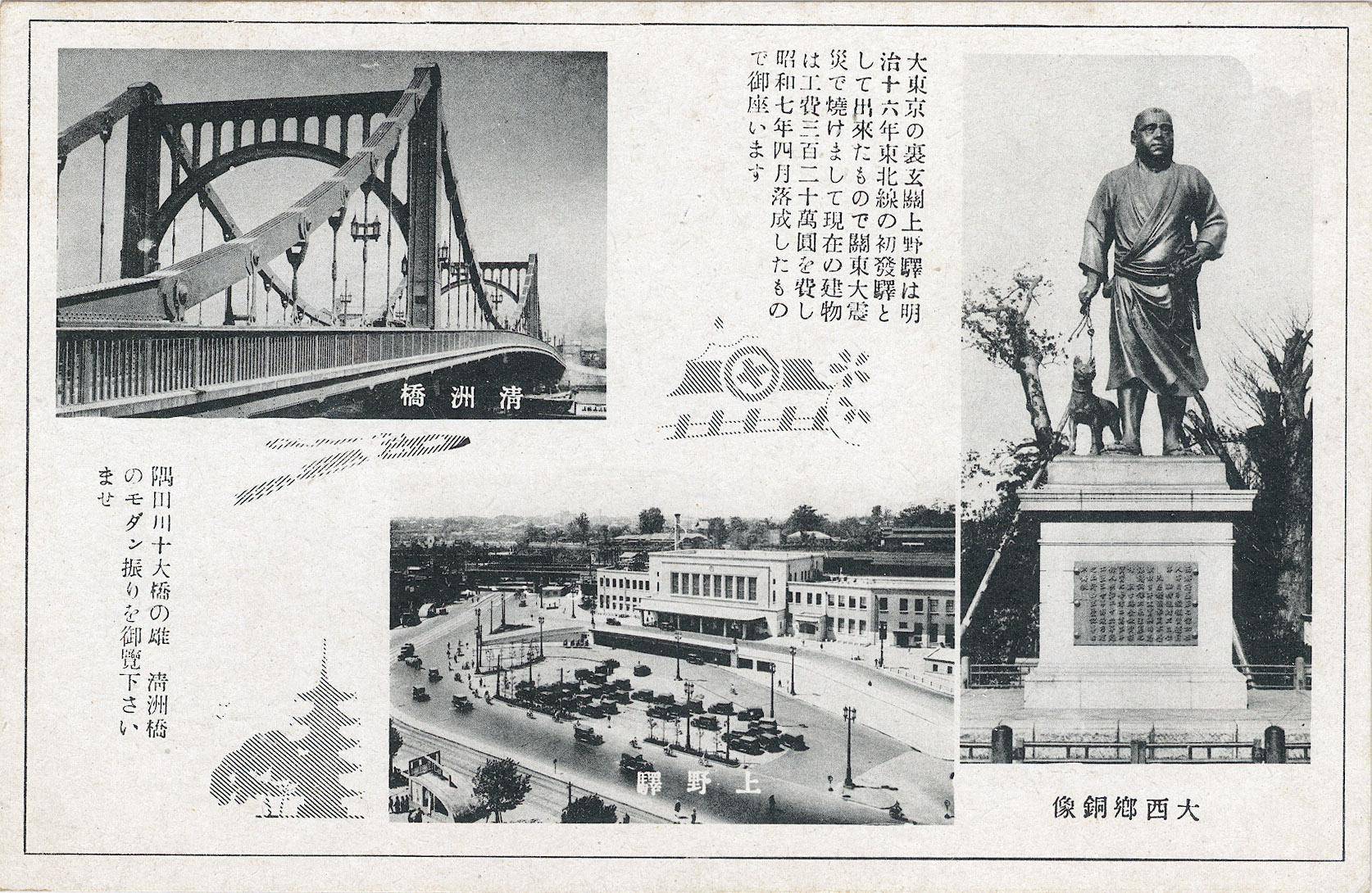 - 20. Statue of Saigo. 21. Ueno Station. 22. Kiyosu Bridge.