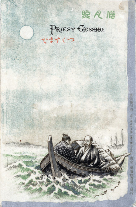 “Gessho (1813-1858) was a Sonno Joi School Buddhist monk (‘Revere the Emperor, Expel the Barbarians’) who lived at the end of the Edo period. He went by the aliases Sokyu, Ninkai, Ningai and Hisamaru.