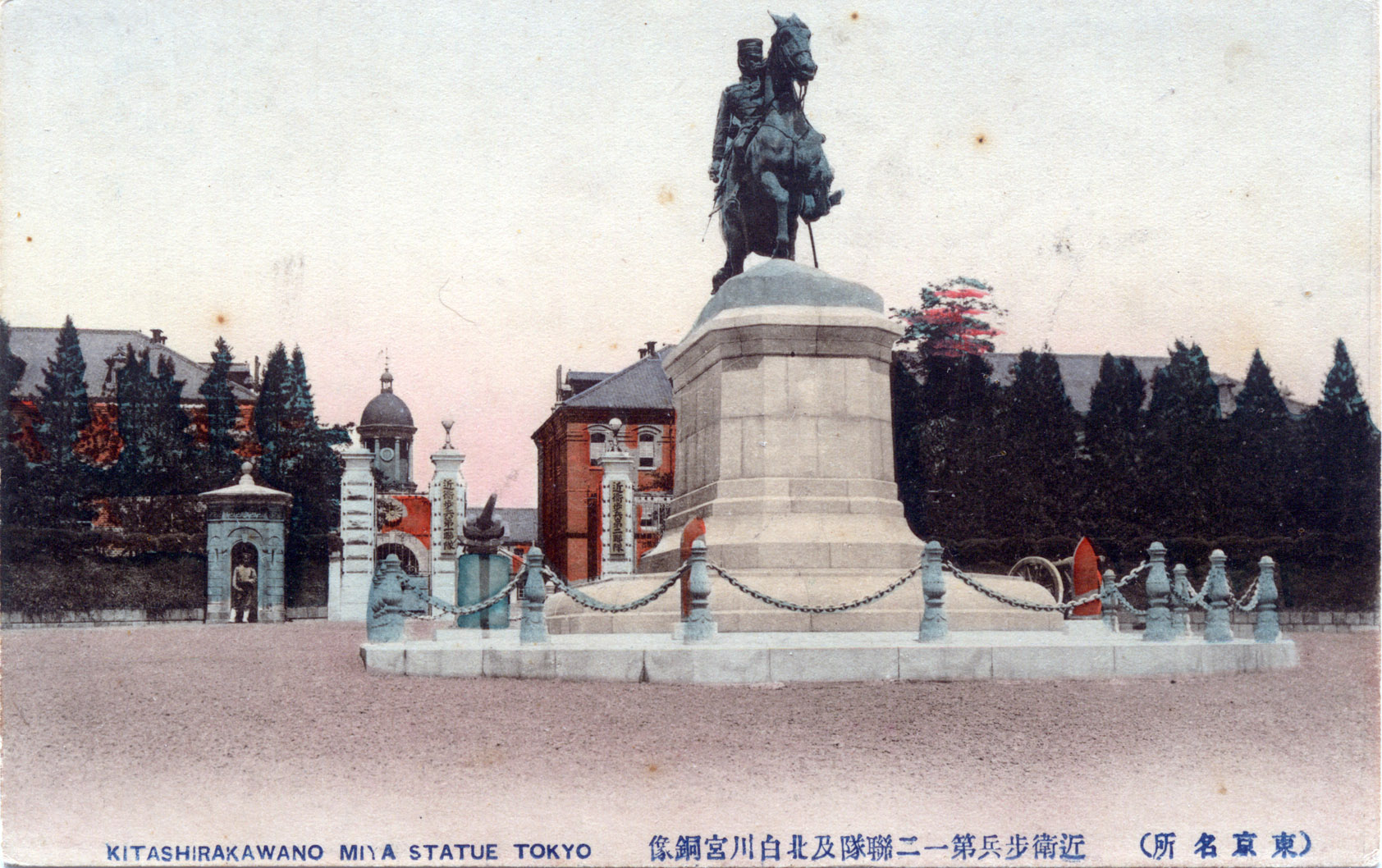“Kitashirakawa no miya” statue, c. 1910, a bronze effigy erected in 1903, in Kitanomaru Park near Imperial Palace.