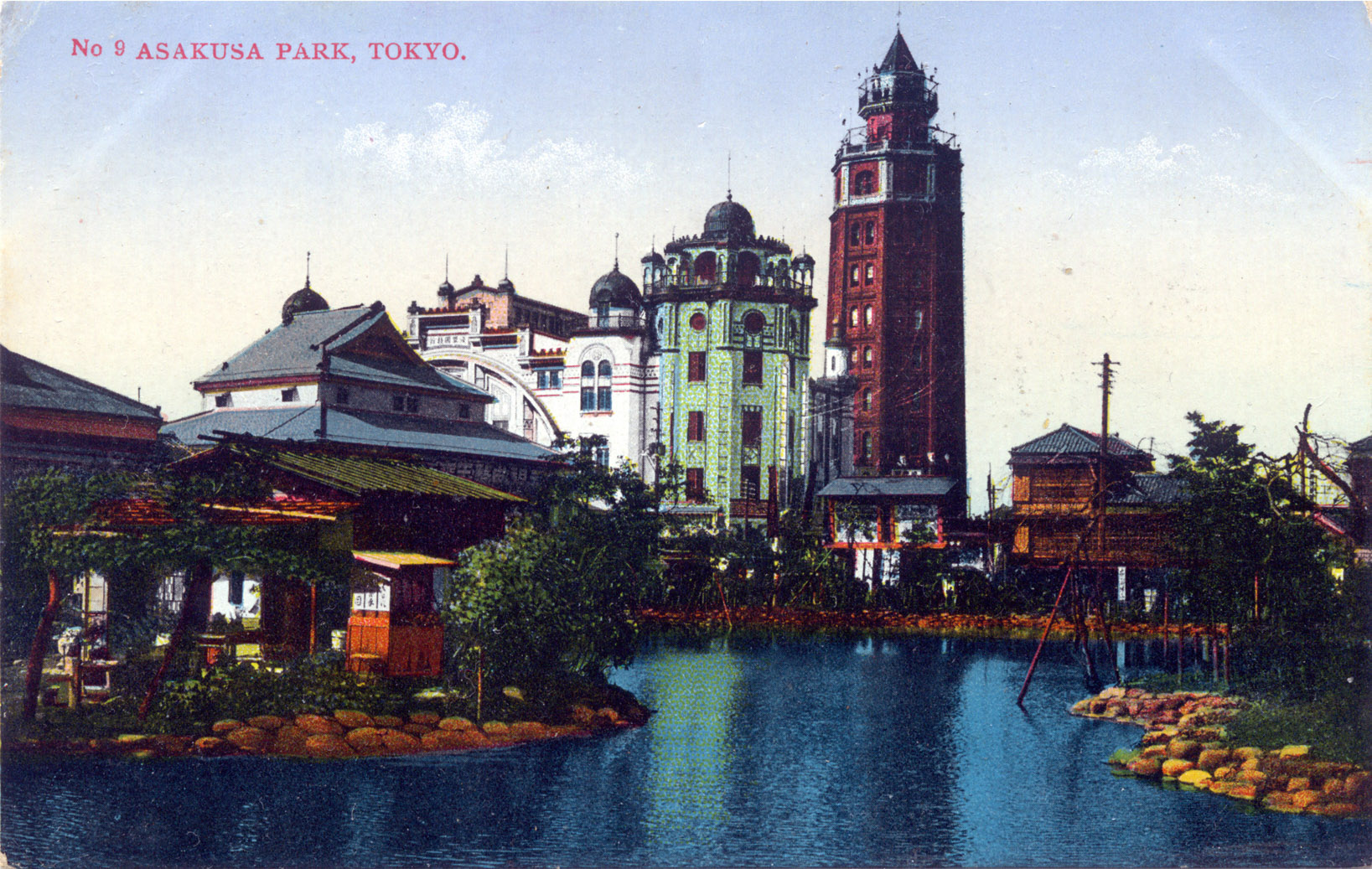 - Ryounkaku at Asakusa Park, Tokyo, c. 1910. Looking across the Gourd Pond.