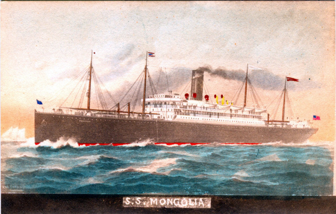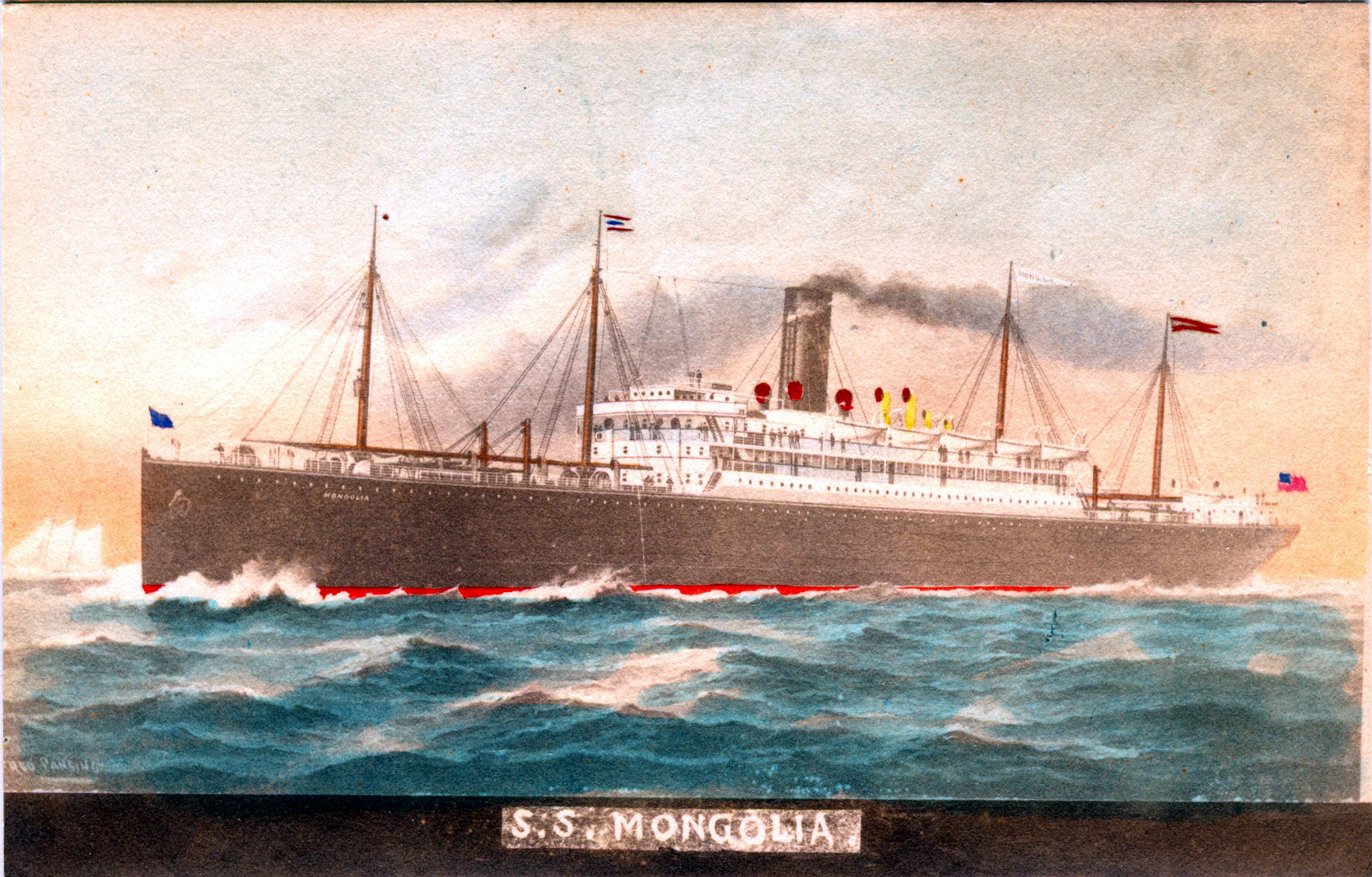 “S.S. Mongolia was a 13,369-ton passenger-and-cargo liner originally built for Pacific Mail Steamship Company in 1904. She later sailed as USS Mongolia (ID-1615) for the U.S. Navy during World War I, as S.S. President Fillmore for the Dollar Line (1921-1938), and as S.S. Panamanian for Cia Transatlantica Centroamericano (1940-1946).