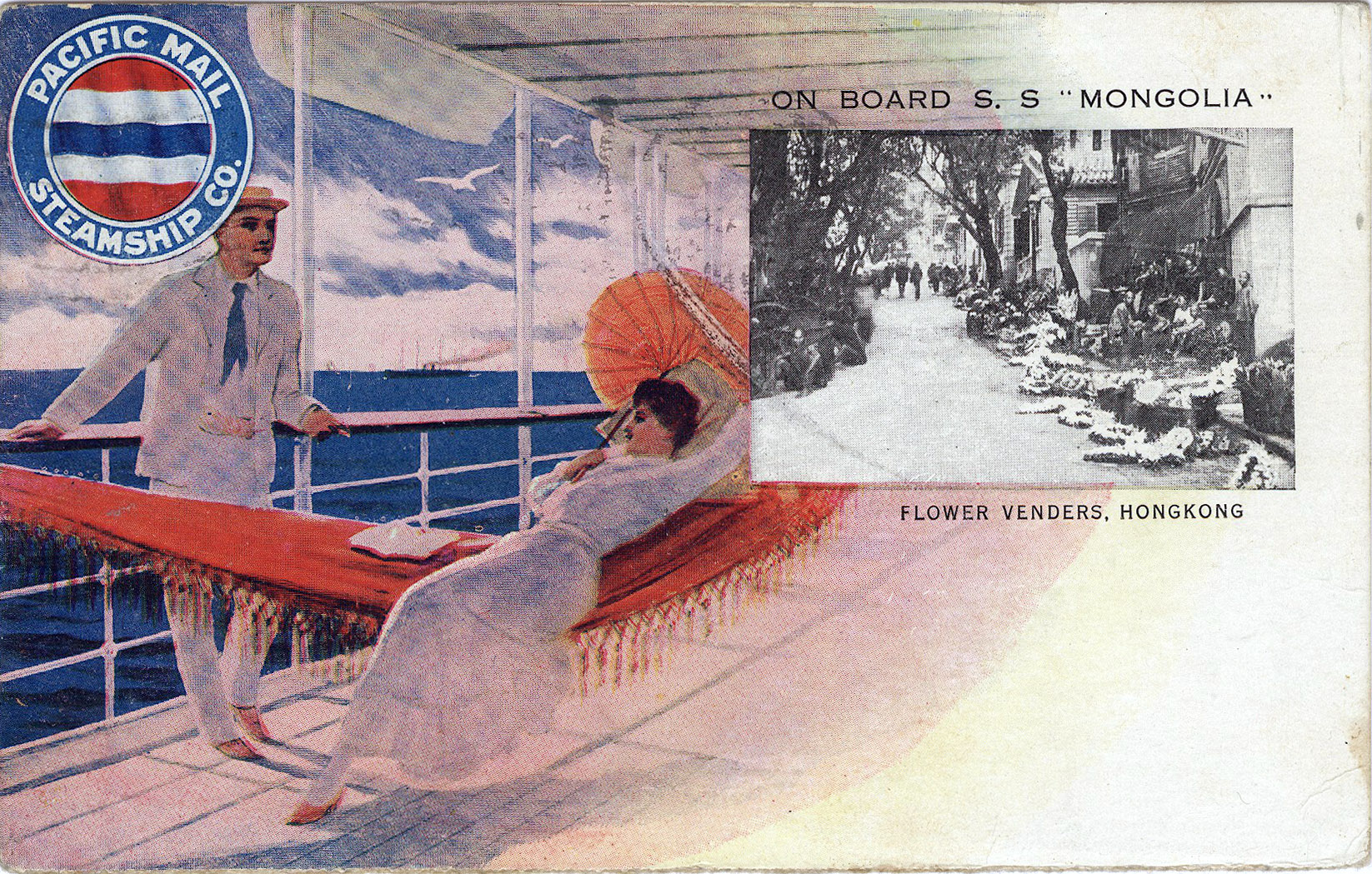 “Ordered by E. H. Harriman’s Pacific Mail Steamship Co. for its San Francisco-Far East service, Mongolia was laid down as Minnelora on 7 June 1902 in Shipway J at New York Shipbuilding in Camden, New Jersey. A sister ship, S.S. Manchuria, was ordered at the same time and delivered three months after Mongolia in 1904. The accommodations of both ships reflected the importance of emigration to shipping lines of the era: 350 first-class, 68 second-class, and 1,300 steerage.