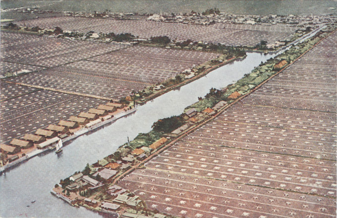 “Almost the entire salt supply of Japan is obtained by the evaporation of saltwater; and here at Mitajiri are hundreds of sea-salt gardens — nothing more than a layer of coarse sand, mixed with clay, thick enough to make it difficult for water to percolate through. The sea water is pumped into ditches, surrounding these sand beds, from which it soaks in and by attraction slowly reaches the surface where the sun, drinking up the water, leaves the salt crystals mingled with the sand.
