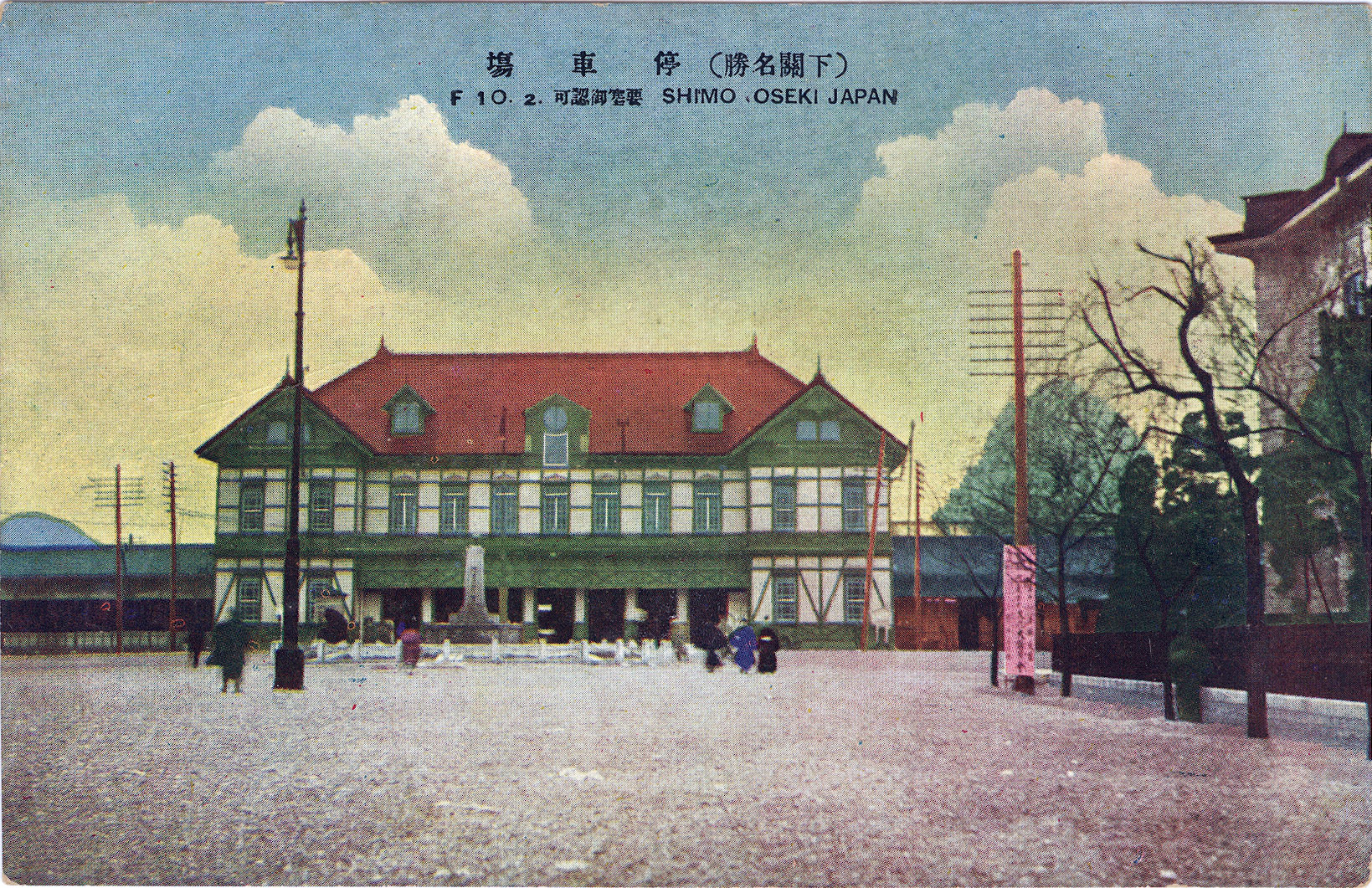 Shimonoseki Station, Shimonoseki, Yamaguchi Prefecture, c. 1910. Shimonoseki Station opened on May 27, 1901 as Bakan Station on the San’yō Railway, adjacent to the Shimonoseki-Moji Railway Ferry. The station name was changed to Shimonoseki Station with the change in city name June 1, 1902. In addition to ferry service across the Straits of Shimonoseki to Kyushu, operations to Busan, Korea, establishing a link to mainland Asia, were added September 11, 1905.
