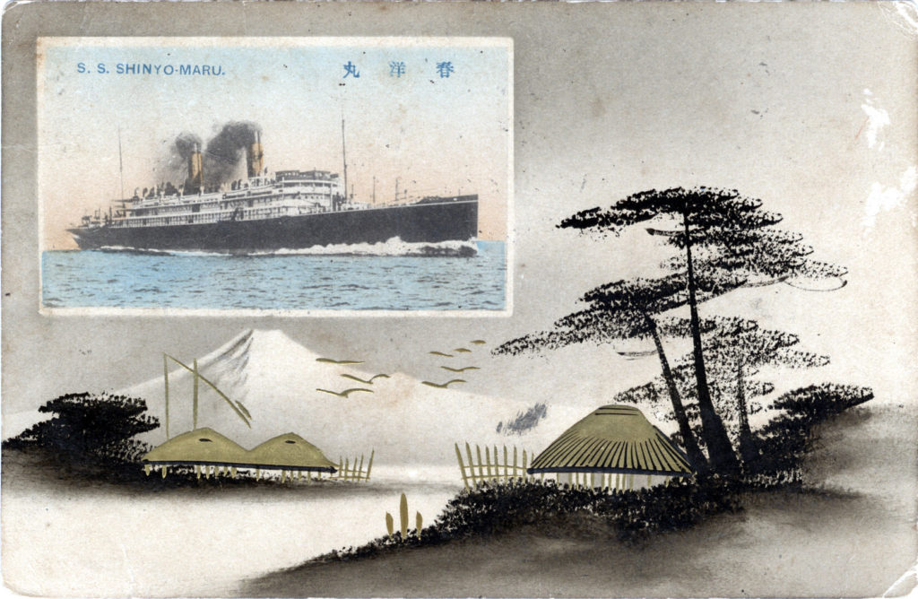 “T.K.K. S.S. Shinyo Maru”, c. 1920. Shinyo Maru was launched in 1911 at the Mitsubishi Dockyard & Engine Works, Nagasaki. In 1926, the ship was sold to Nippon Yusen K.K. (NYK). Laid up in 1932, Shinyo Maru was scrapped in 1936.