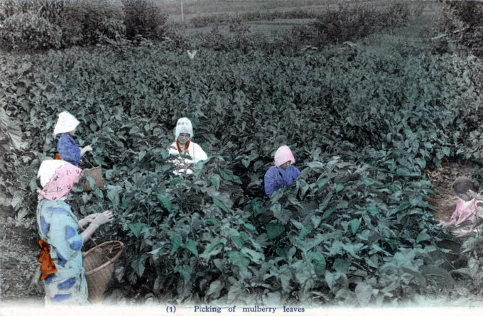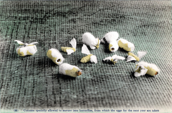 “Cocoons specially allowed to mature into butterflies, from which the eggs for the next year are taken,” c. 1920.