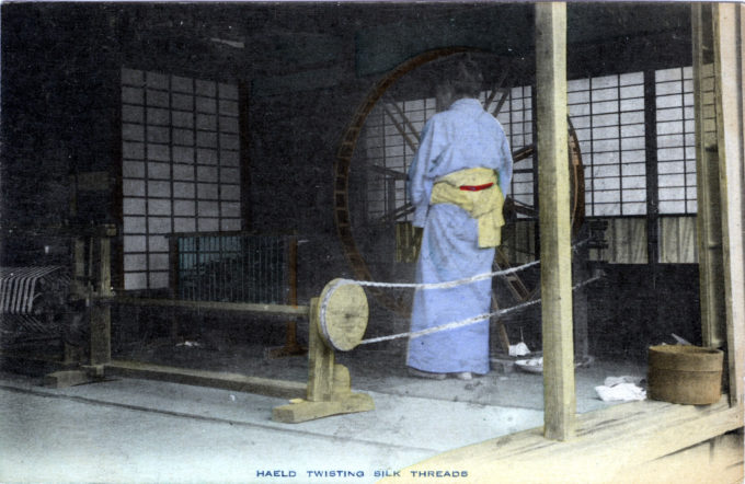 “As raw silk became a prominent export, the silk-reeling industry developed remarkably. An improved manual silk reeling method called ‘Kairyo Zaguri’ was developed in Gunma Prefecture. Through this method, raw silk reeled by each farmer was sorted to standardize, and re-reeled onto bigger reel. Among the first unions organized in Japan were formed by silk-raising farmers who, individually, did not have much capital to make manufacturing improvements. Those organizations improved the quality of silk yarns, and dramatically expanded silk production volume.”