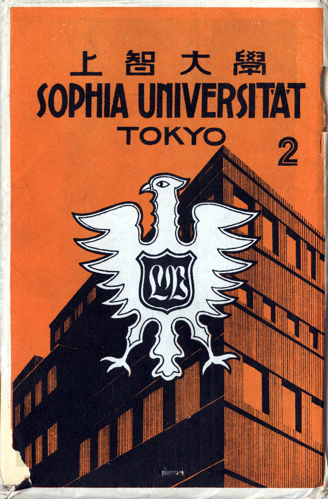 Sophia University (cover), c. 1930. The cover artwork displays the Germanic Jesuit origins of the school, featuring a stylization of the Prussian imperial eagle. Within the eagle are the initials “LV”, for the Latin Lux Veritatis (Light of Truth), the school’s motto.