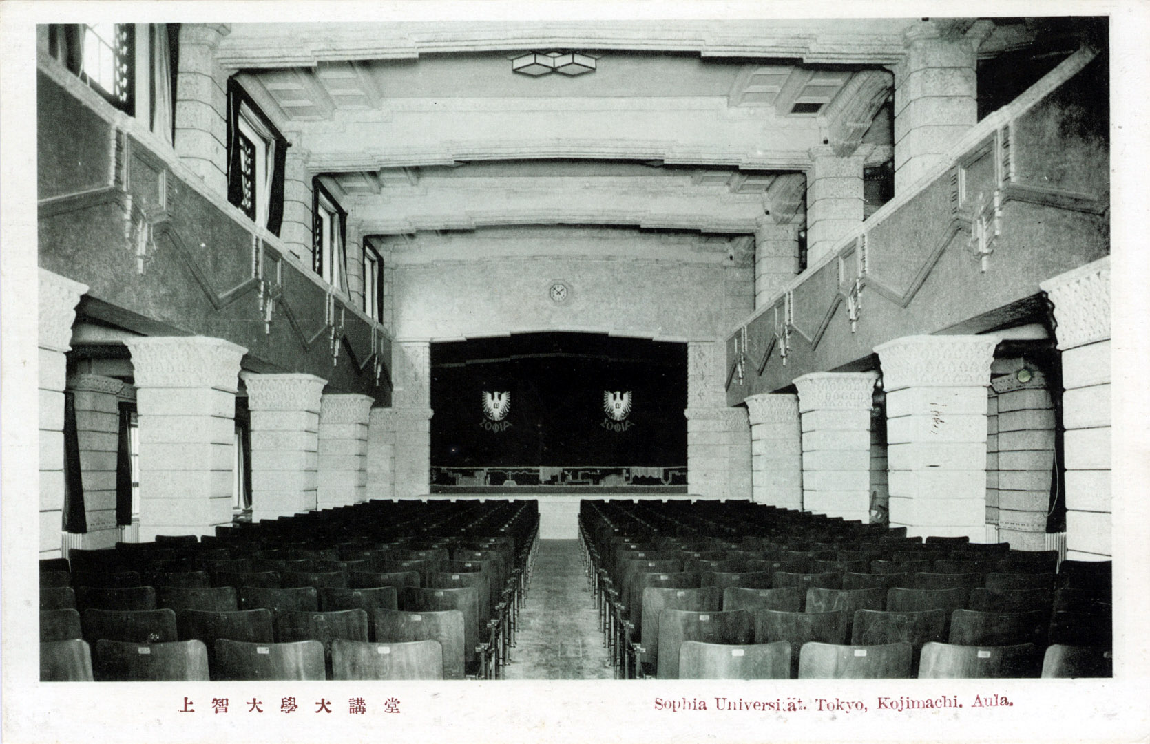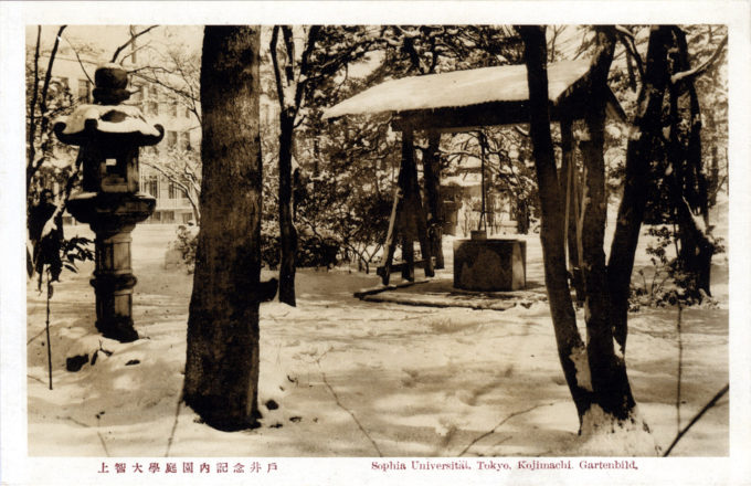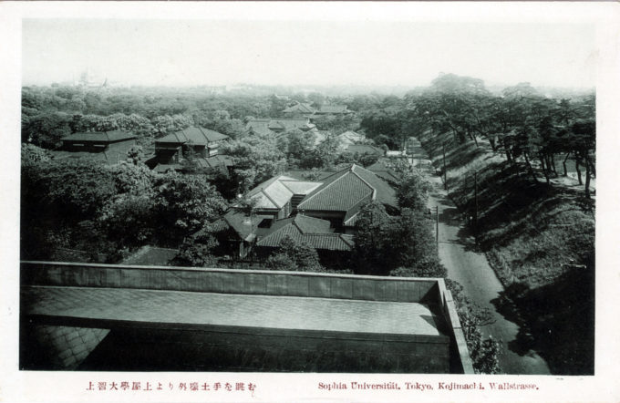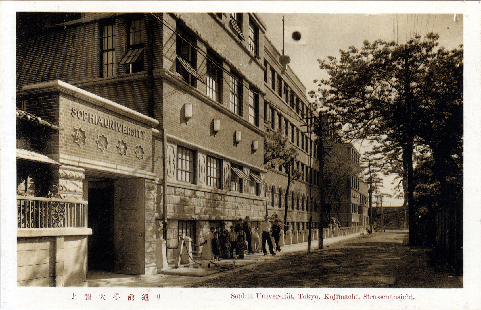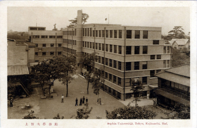 Sophia University, Kojimachi, Yotsuya, c. 1930. The university campus would be severely damaged in the waning months of World War II, during an April 13, 1945 firebombing of the capital by B-29 heavy bombers. According to the university records, 74 incendiary and two explosive bombs fell on the campus that night.