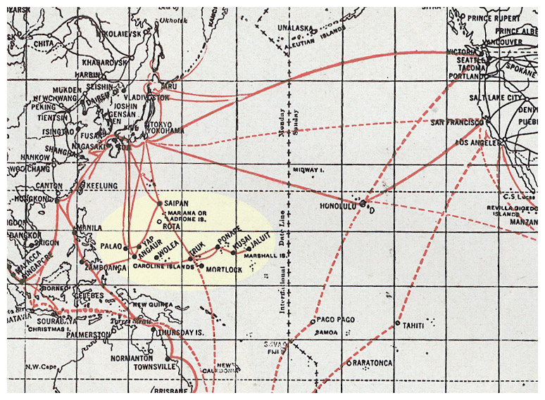 “Their location in relation to American possessions is the matter of chief concern to the United States. They lie directly across the natural line of communication between Hawaii and the Philippines. Guam, belonging to the United States and having important cable communications, east and west, is located very nearly in the geographic center of the Japanese mandate possessions.