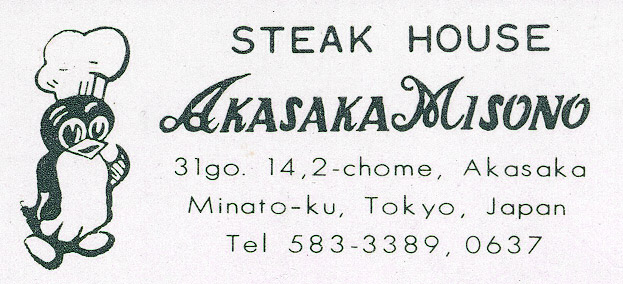 - Steak House Akasaka Misono, Akasaka, Tokyo, c. 1970.