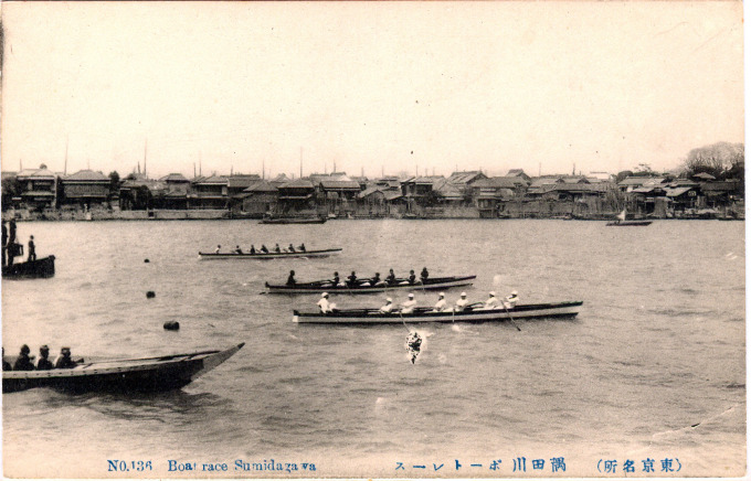“The most noticeable game in the university is boating. Each college has its own crews, and the inter-collegiate boat-race, held on the second Saturday of April, every year, on the River of Sumida which is famous for the cherry trees on its banks, is one of the most interesting and exciting athletic events of the year.