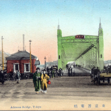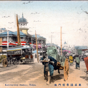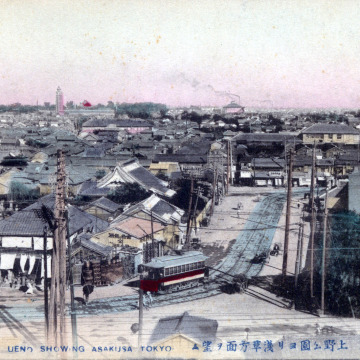 Postcard reproduction (partial) of Hiroshige’s “Kinryūzan Temple in Asakusa”, Tokyo, c. 1940.