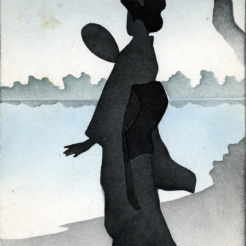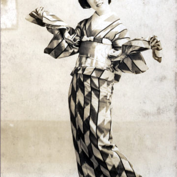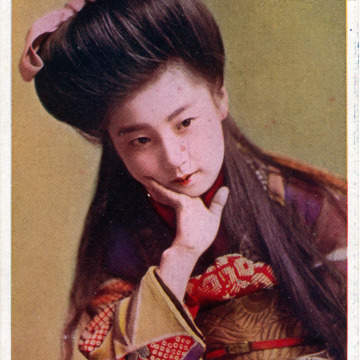 Maid holding “tenugui” [cotton hand towel], c. 1920.