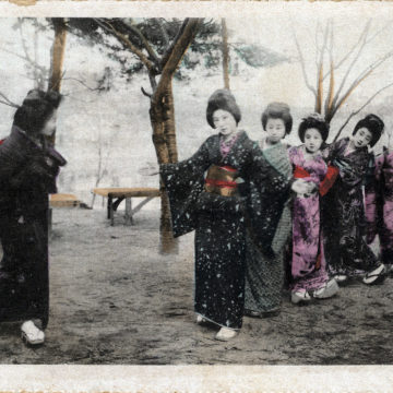 Maiko playing “onigokko” (“devil catch”), c. 1920.