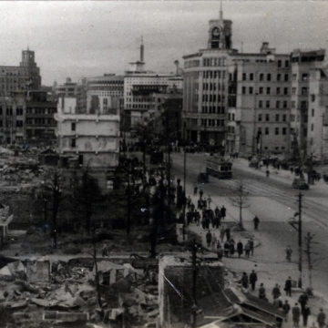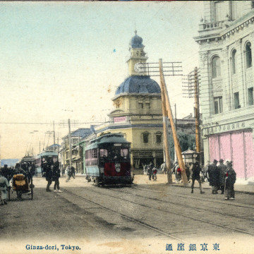 Ginza Crossing streetcars, Tokyo, c. 1960.
