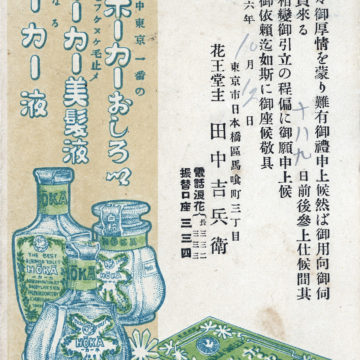 “Stand Tall”, Fine Rubber zori inserts advertising postcard, Nihonbashi, Tokyo, c. 1930.