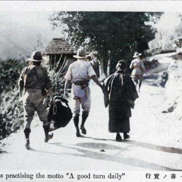 “Boy Scouts practising the motto ‘A good turn daily’”, c. 1920. (Colorized)