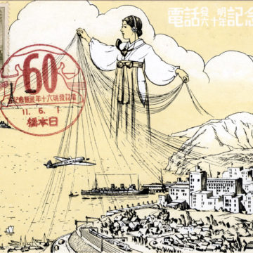 “Opening of the telephone office” commemorative postcard, Fukushima City, Fukushima Prefecture, 1907.