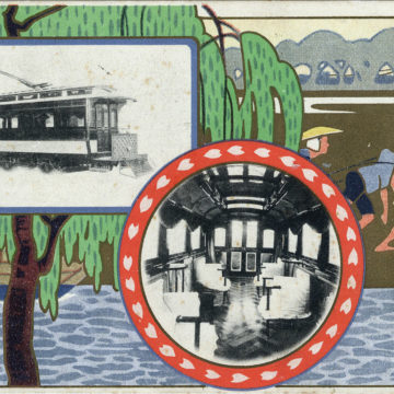 Opening of the Kyoto electric streetcar system (1895) commemorative postcard, c. 1905.