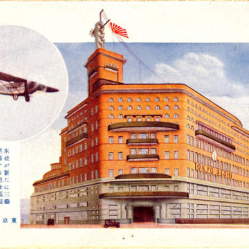 “Our company’s newly acquired all-metal Dornier aircraft”, Asahi Shimbun building, Sukiyabashi, Tokyo, c. 1930.