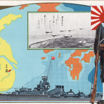 ““Domestic and International Communications Network” advertising postcard, Tokyo Nichi Nichi Shimbun, Tokyo, c. 1940.
