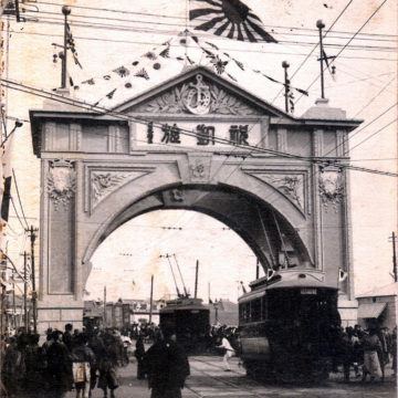“Japanese troops marching scene to Ping Yang (Pyongyang) [in 1894]”, Russo-Japanese War propaganda postcard, c. 1905.