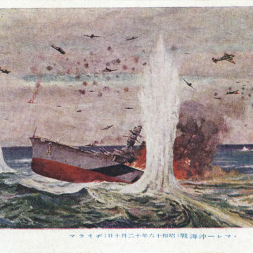 Sinking the HMS Prince of Wales and HMS Repulse propaganda postcard, 1941.