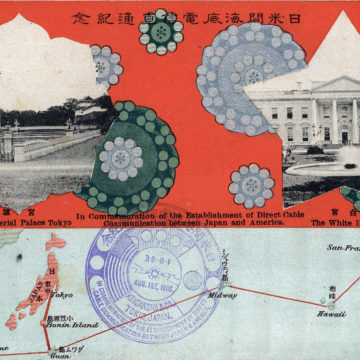 “In commemoration of the Establishment of Direct Cable Communication between Japan and America” commemorative postcards, 1906.