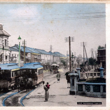 Horse-drawn trolleys, Nihonbashi & Shimbashi, Tokyo, c. 1900.