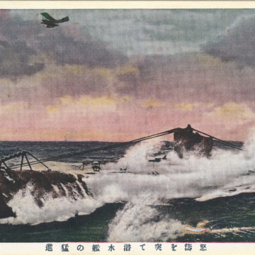“The submarine’s onslaught in angry seas.” I.J.N. Submarine Ro-33, c. 1935.