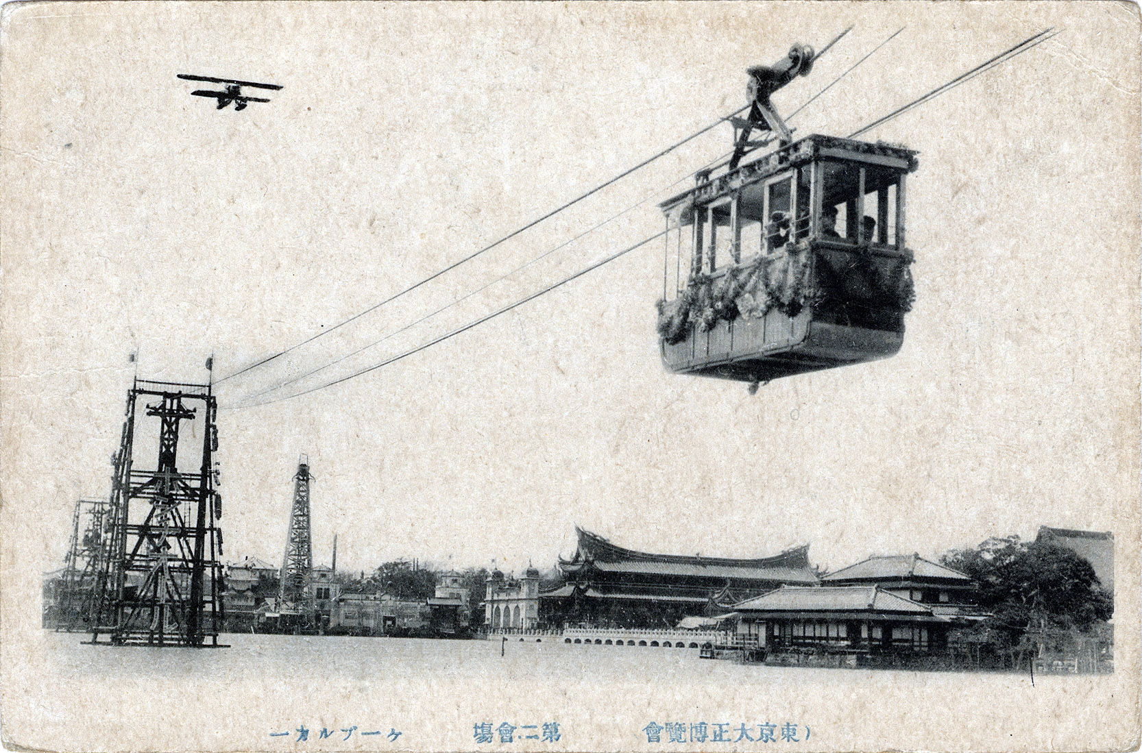 A “first” in Japan: The demonstration of an electrically-powered aerial cable car, Taisho Exhibition, Ueno Park, Tokyo, 1914.