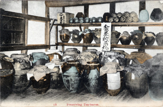 “… Though tea culture and manufacture are essentially subsidiary and household industries, in the early days of the Meiji era manufacturers became aware of the advantage of combination and co-operation, and in about 1876 a joint stock company was organized at Shizuoka.