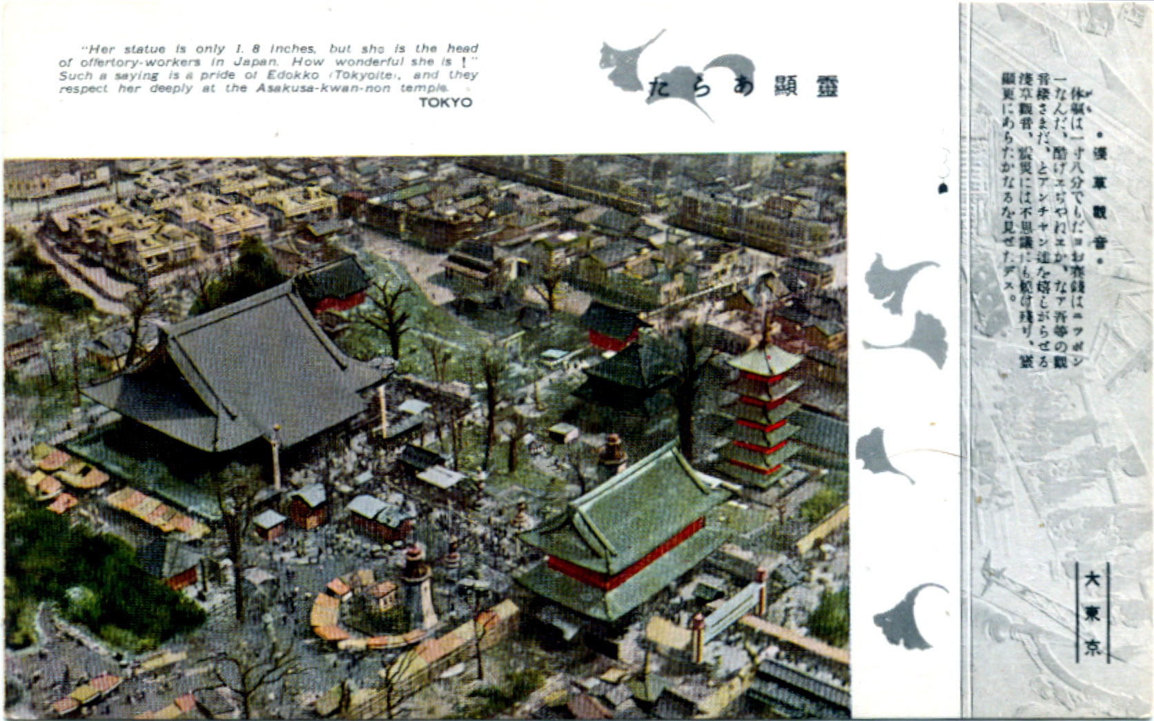 “The Asakusa Kannon is home, so to speak, to all those who inhabit downtown Tokyo. An Asakusa native need only step onto the temple grounds to feel he is treading his native soil.