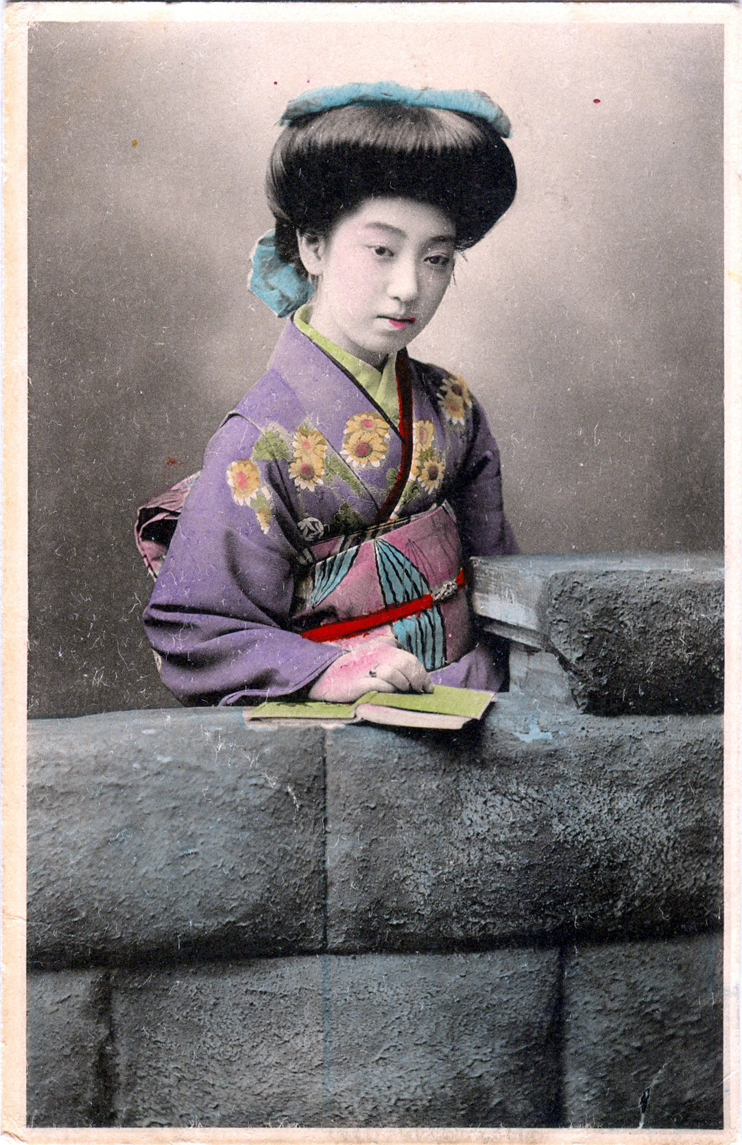 Around the age of 16, she fell in love and had her heart broken, and tried to commit suicide by cutting off the tip to her left-hand little finger. She recovered from both her broken heart and her suicide attempt and, losing the tip of her finger, was thus nicknamed ‘The Nine Fingered Geisha’. (Note that in her portraiture, you never see her full left hand.)