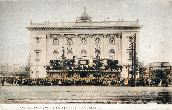 “… The Imperial Theater to which we went was a magnificent fireproof building in the heart of the city, and all anxiety from fire was dispelled. During the weeks before the fire it [had been] filled each night by crowds of amusement-seekers. But the company playing there was dismissed, at great financial sacrifice to the owners, and the magnificent building was placed at the disposal of the Convention. The rent was paid from the insurance on the burned building.